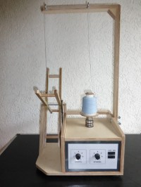 Nach kurzer Zeit ist die nun fertig getwistete Wolle auf der Haspel