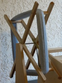 Alternativ kann auch der ganze Strang von der Haspel abgenommen werden (zum Beispiel um die Wolle zu drallberuhigen)