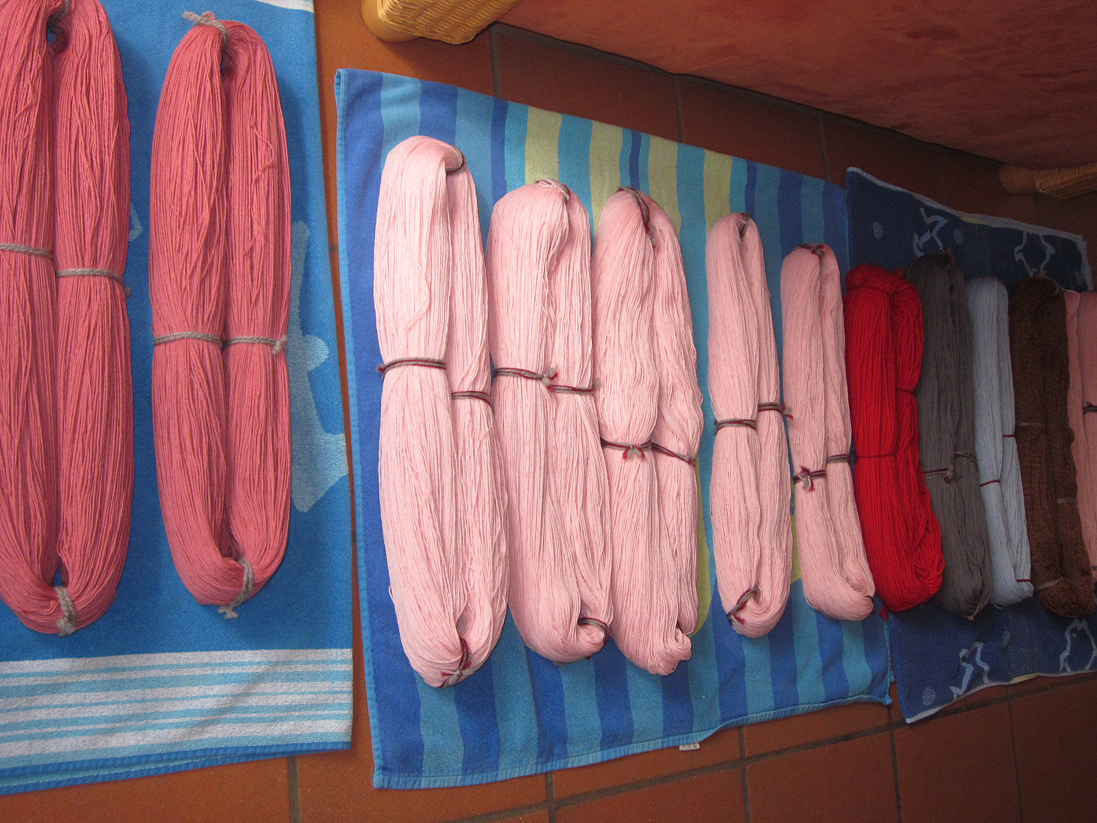 Danach werden die Stränge in der Wäscheschleuder geschleudert. Sie verlassen die Schleuder fast trocken und wider allen Erwartens wohlgeordnet und glatt. Zum vollständigen Trocknen reicht es aus, sie über Nacht auf ein Handtuch zu legen.