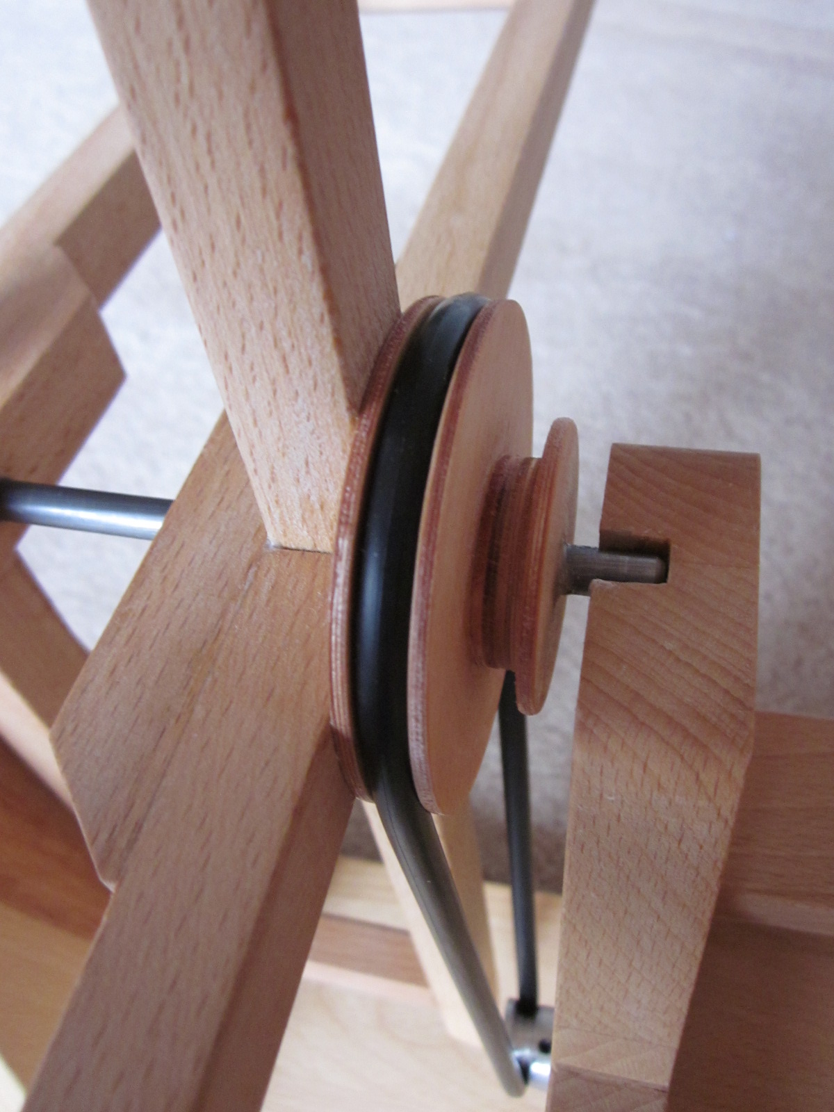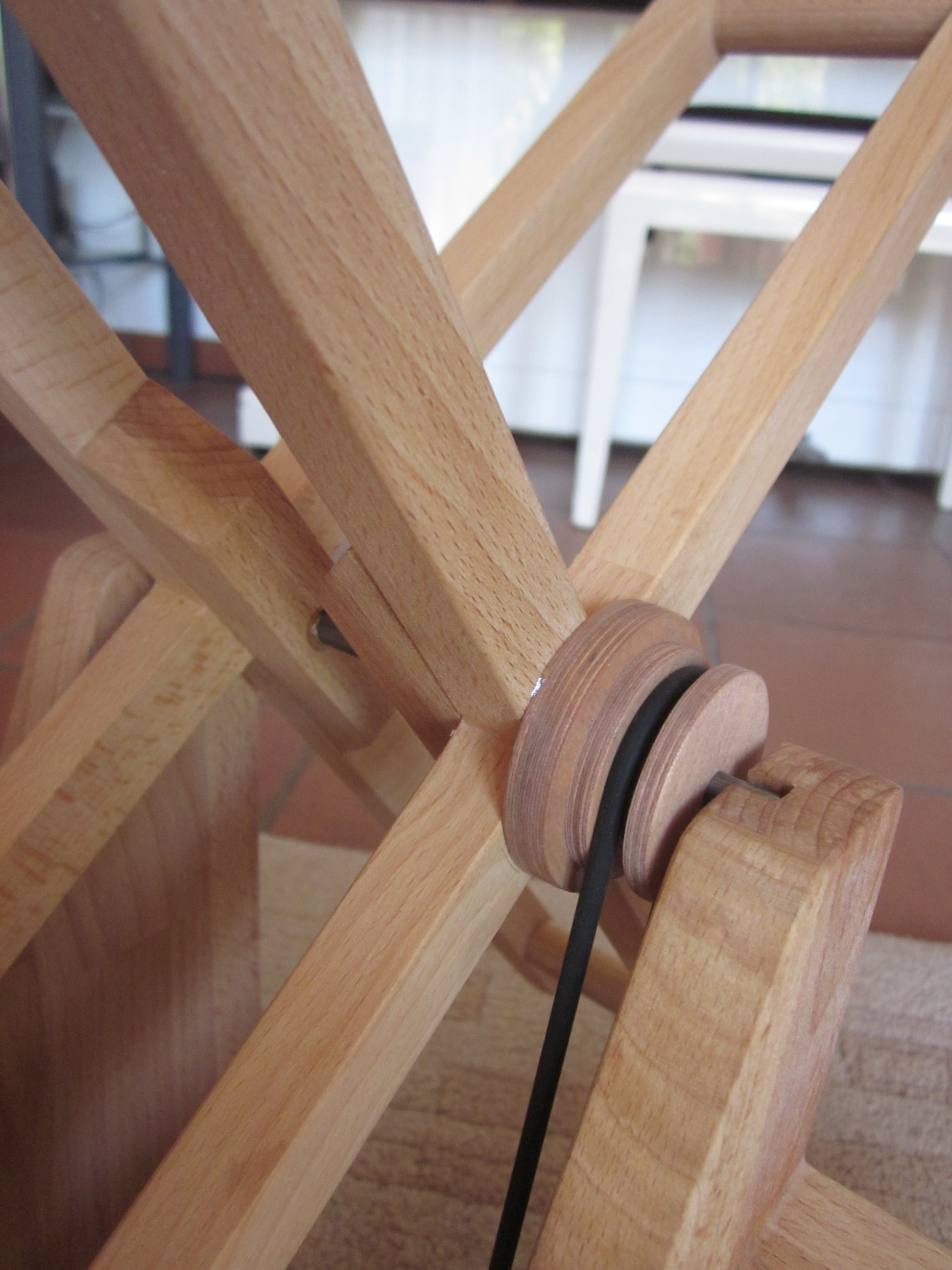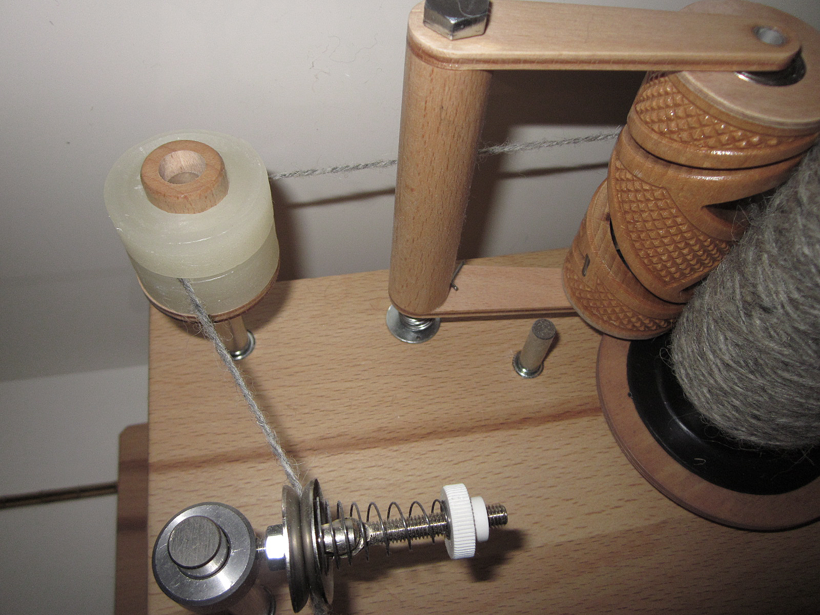 Der neue Wollwickler ist fertig, passend zum Wolltwister mit einem Gehäuse aus edlem Buchenholz und natürlich auch einigen anderen Verbesserungen. Der Paraffineur ist kugelgelagert und jetzt durch einen Stellring in der Höhe justierbar. Der Durchmesser der Nutentrommel wurde auf 45mm vergrößert und nutzt die komplette Höhe der Brotherkonen. Dank des Gesamtgewichtes von über 3 kg braucht man ihn zum Betrieb nicht festklemmen.