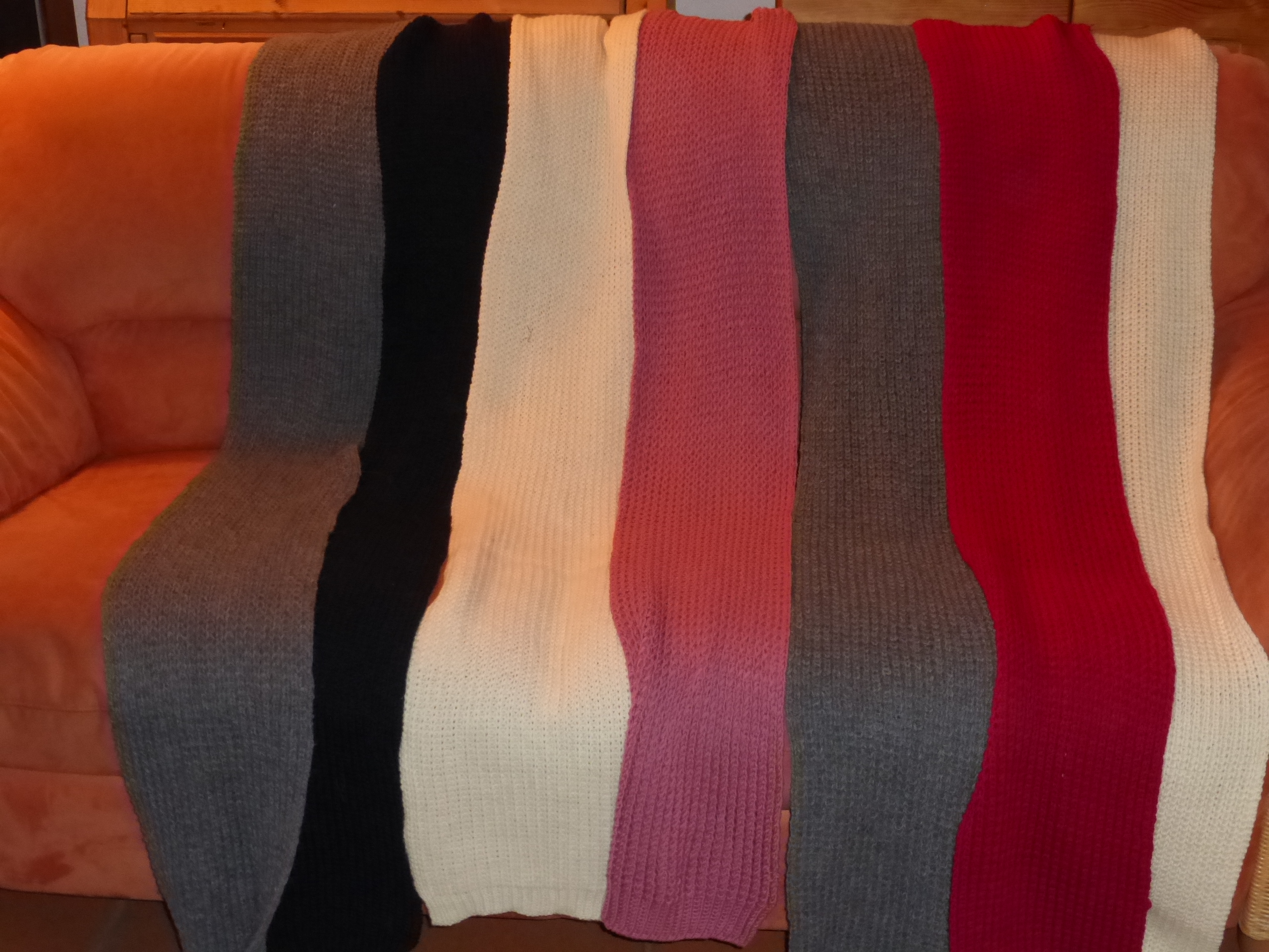 Gestrickt waren die Schals so im Handumdrehen und zu vernähen war jeweils nur ein Faden am Anfang und am Ende.